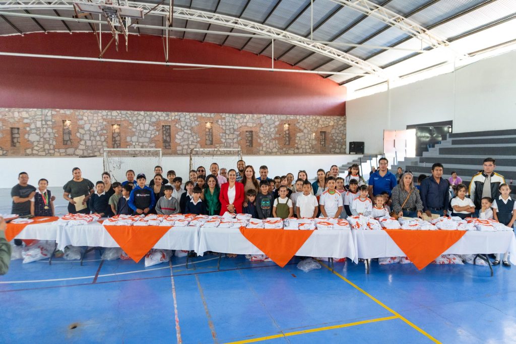 Este martes, en el gimnasio municipal, la alcaldesa Erika Cuevas realizó personalmente la primera entrega de uniformes y equipo a los ganadores de los juegos escolares de educación básica, etapa estatal.